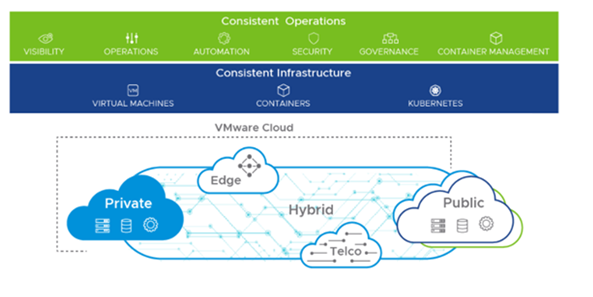 VMware offers a full portfolio of multi-cloud solutions for establishing consistent infrastructure and consistent operations across clouds—from private clouds to public clouds, edge environments and telco clouds.