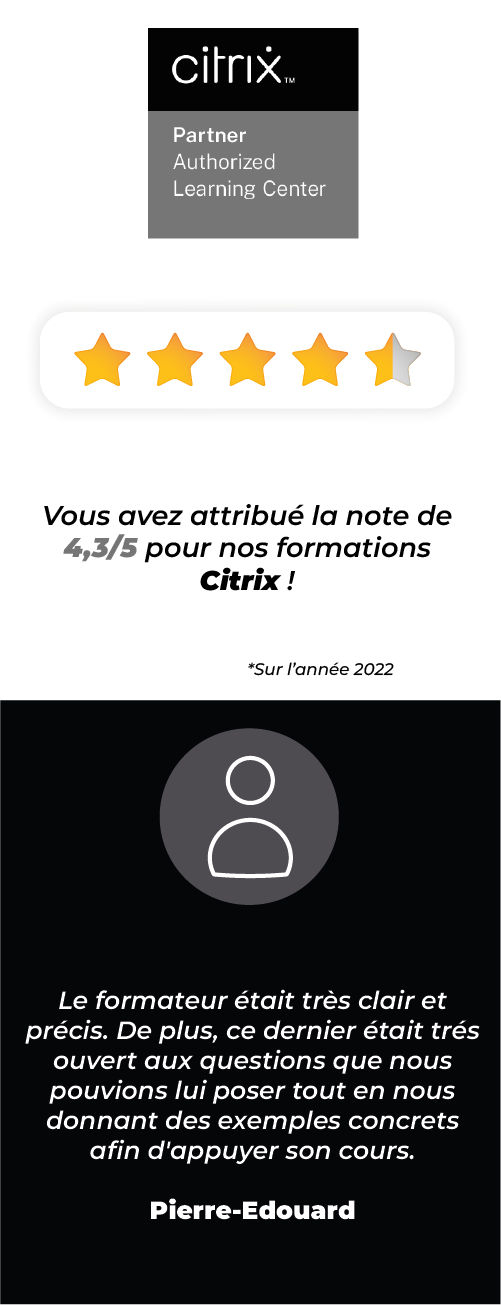 Les formations Citrix sont dédiées aux solutions de virtualisation et management d'infrastructure : XenApp, XenDesktop, NetScaler.