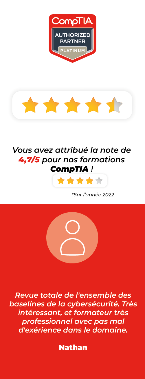 Global Knowledge est accrédité centre de formation officiel CompTIA et vous propose des formations préparant aux principaux titres de certification Network+ et Security+.